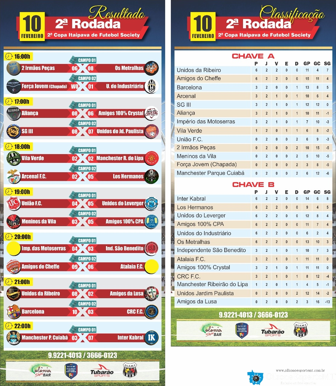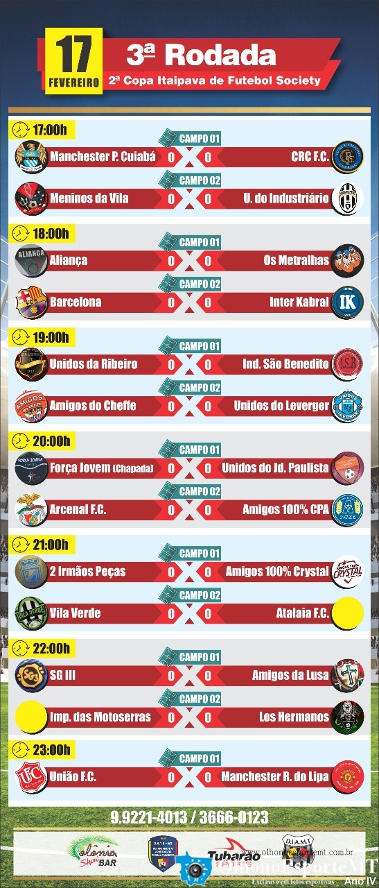 CONFIRA A TABELA DE JOGOS E CLASSIFICAÇÃO DA 8ª COPA ITAIPAVA NO COLONIA SHOW BAR - OlhonoEsporteMT