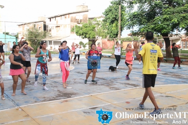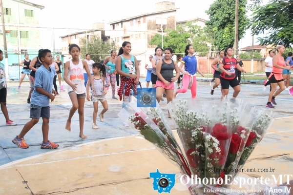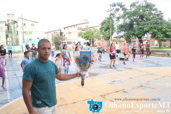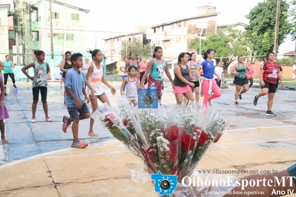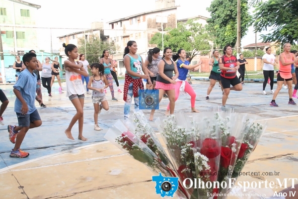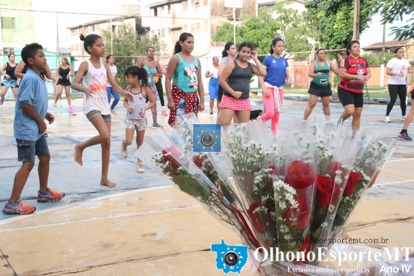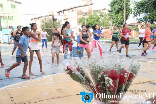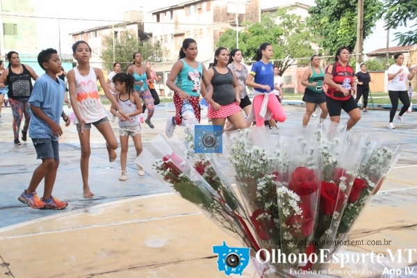 Entrega de flores para as primeiras vinte mulheres marcou a segunda aula de Aeróbica Saúde é o que Interessa o e Resto não tem Pressa na praça dos Amigos 100% no CPA 3. OlhonoEsporteMT OBS. as aulas acontecem todos os sábados a partir das 6:30 da manhã