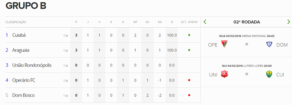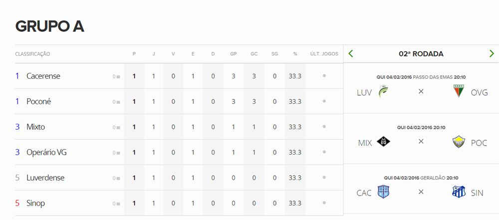 Tabela do Campeonato Matogrossense - 1ª Fase