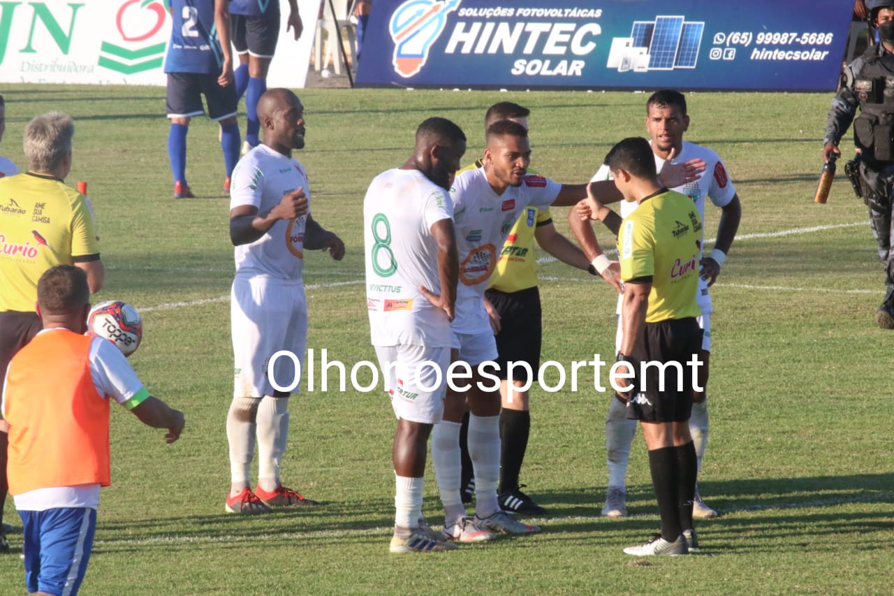 No primeiro tempo o jogo foi mais equilibrado. A primeira grande chance foi do artilheiro do Mato-grossense, Lucas Cardoso, que chutou para boa defesa de Gabriel. Logo depois, o Nova Mutum chegou com Erick, que acertou o travessão do goleiro Elias.