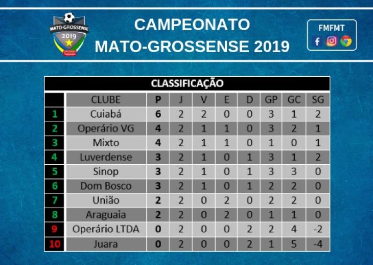 Com o empate, o União acabou a rodada em sétima posição com dois pontos já o Araguaia, também com dois pontos, está em oitavo.