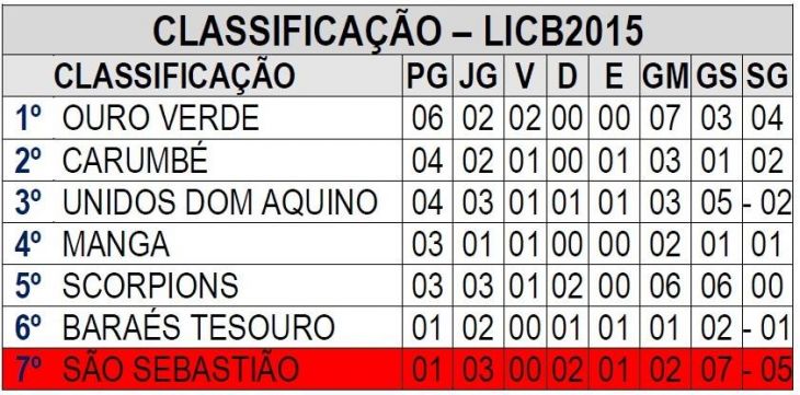- Confira a tabela de classificação do Campeonato Dom Aquino VER mais