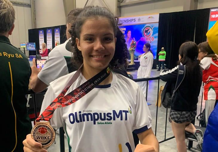 A karateca Maria Victória Portes, de Brasnorte, conquistou medalha de bronze no Campeonato Mundial, no México