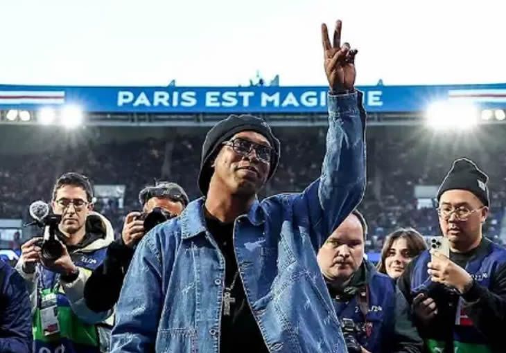 - Ronaldinho Gaúcho é aclamado pelos torcedores durante o jogo entre PSG e Barcelona