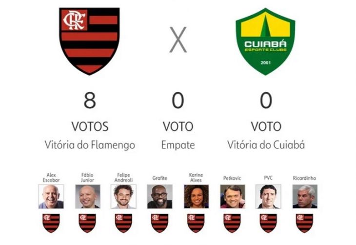 - Por unanimidade, jornalistas e apresentadores da Globo cravam vitória do Flamengo sobre o Cuiabá; 8 a 0